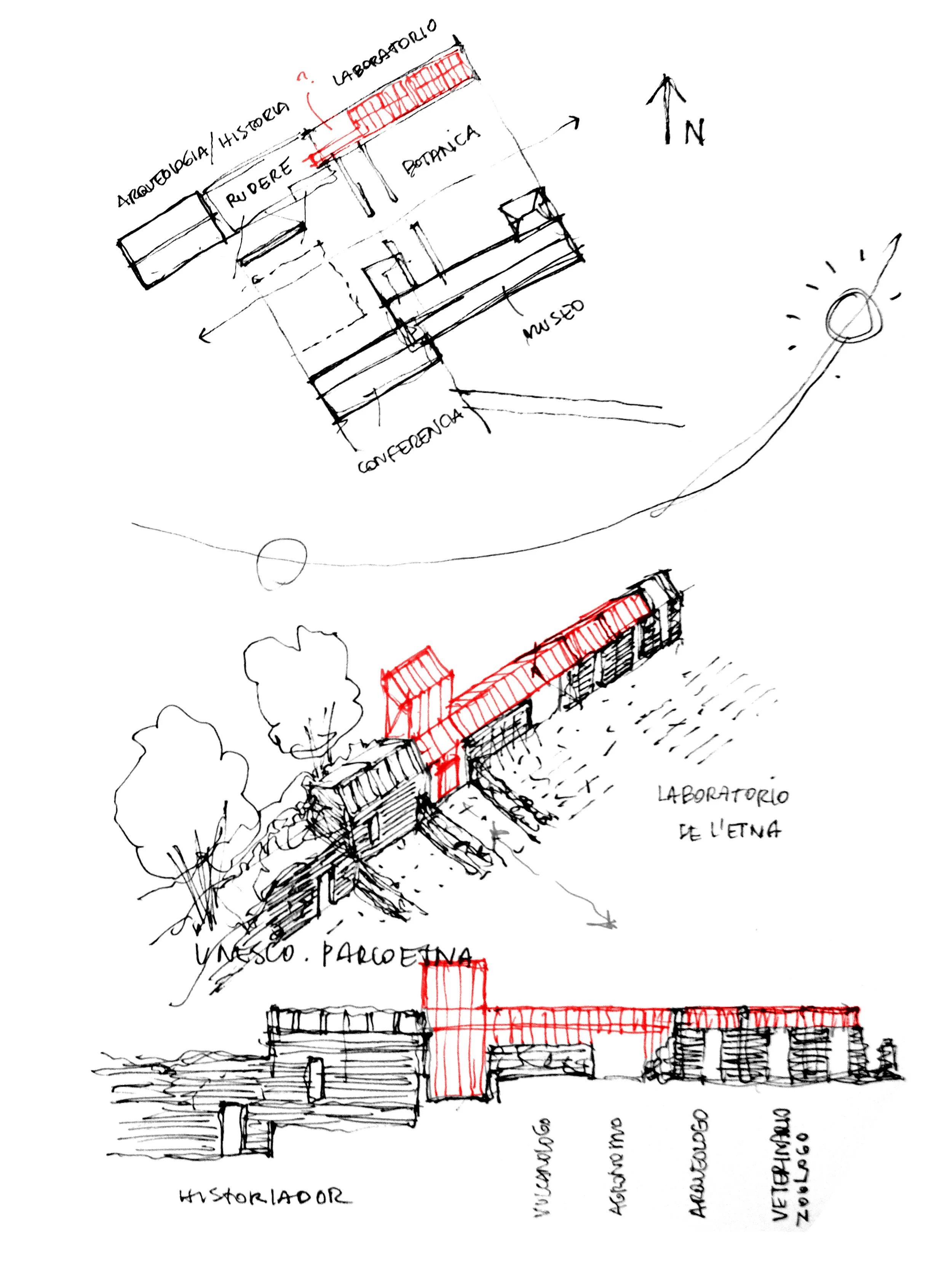 These small infrastructures would give basic support -in the ruin- to local specialists that could take forward research on subjects tightly related to the Etna volcano, such as: volcanology, zoology, archeology and agronomy, among others.