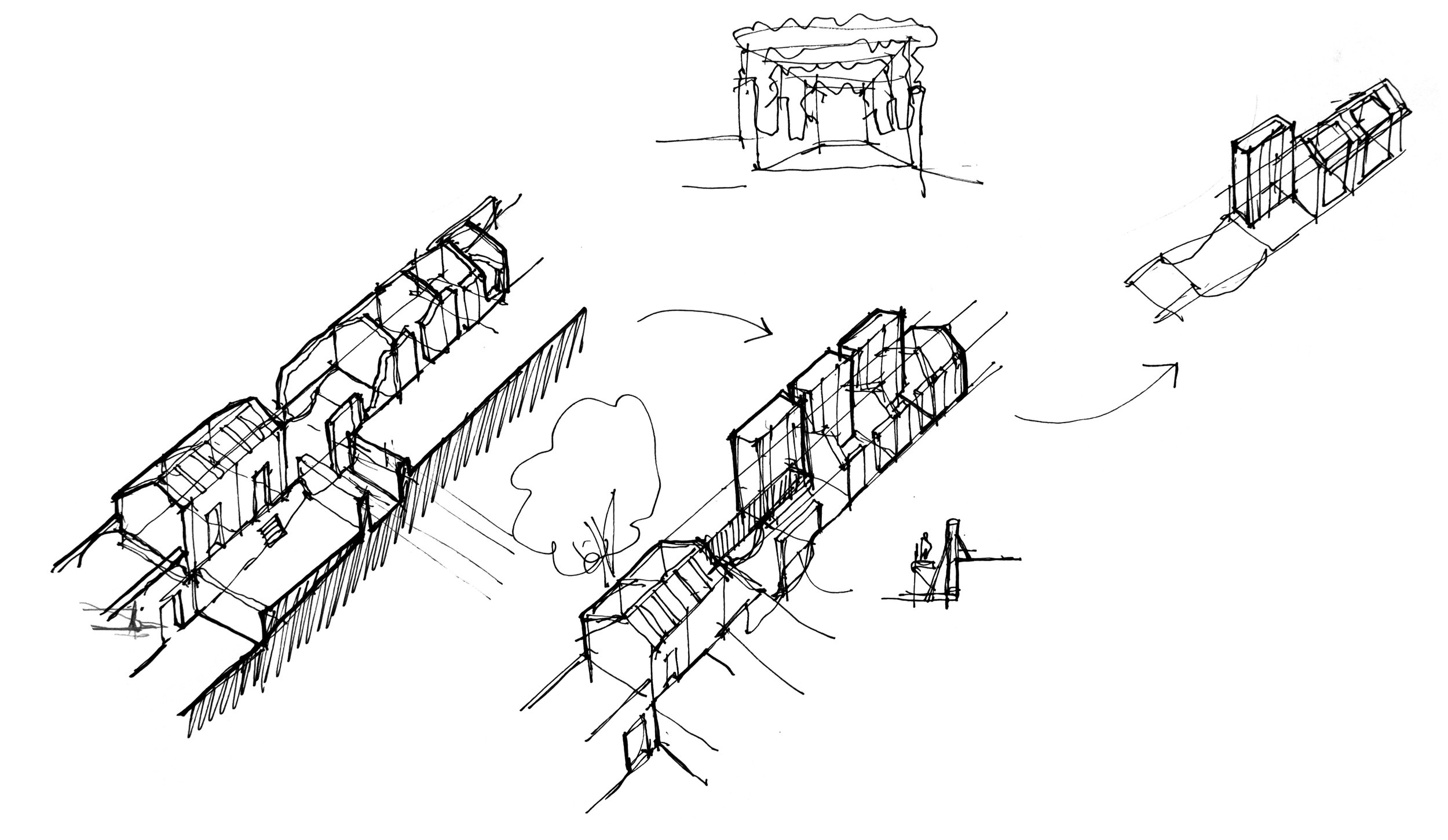 Our conceptual approach consisted of non-permanent, light structure interventions on few and selected areas of the ruin and not in its entirety, respecting existing microfauna ecosystems that have colonized the drystone structures in most areas of the ruin.